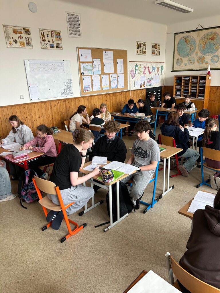 Deváťáci zjistili, že vysvětlit něco někomu jinému je úplně jiný level než to jen „nějak vypočítat“. Občas padly zajímavé formulace, občas kreativní postupy… ale kupodivu to fungovalo. A hlavně – byla to docela dobrá rozcvička před přijímačkami.