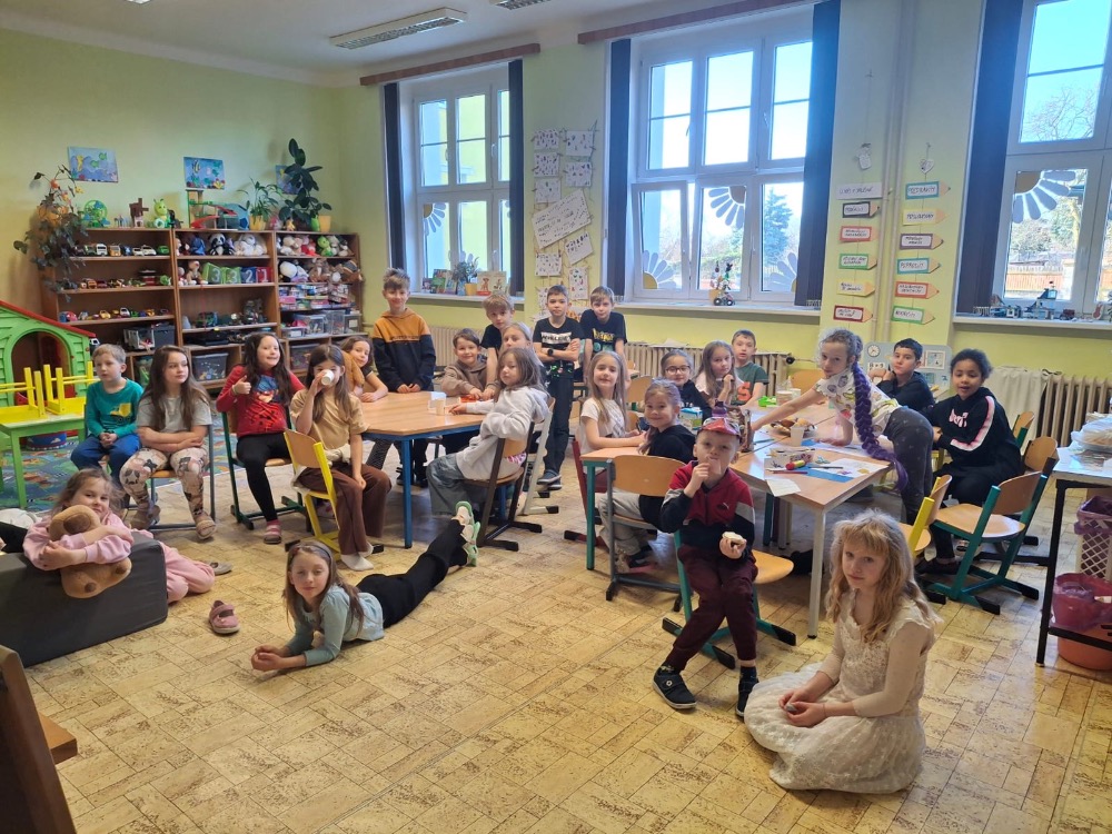 Po návratu do školy čekala na malé čtenáře tři tematická stanoviště, kde si každý přišel na své… Z prvního stanoviště se šířila vůně sladkého pudinku, který si děti samy připravily jako zaslouženou odměnu. V tvořivé dílně vznikaly originální záložky do knížek, které budou dětem připomínat společné zážitky při každém dalším čtení. A nakonec se mladí umělci pustili do ilustrování svých oblíbených pohádkových pasáží a vytvořili krásnou galerii obrázků.